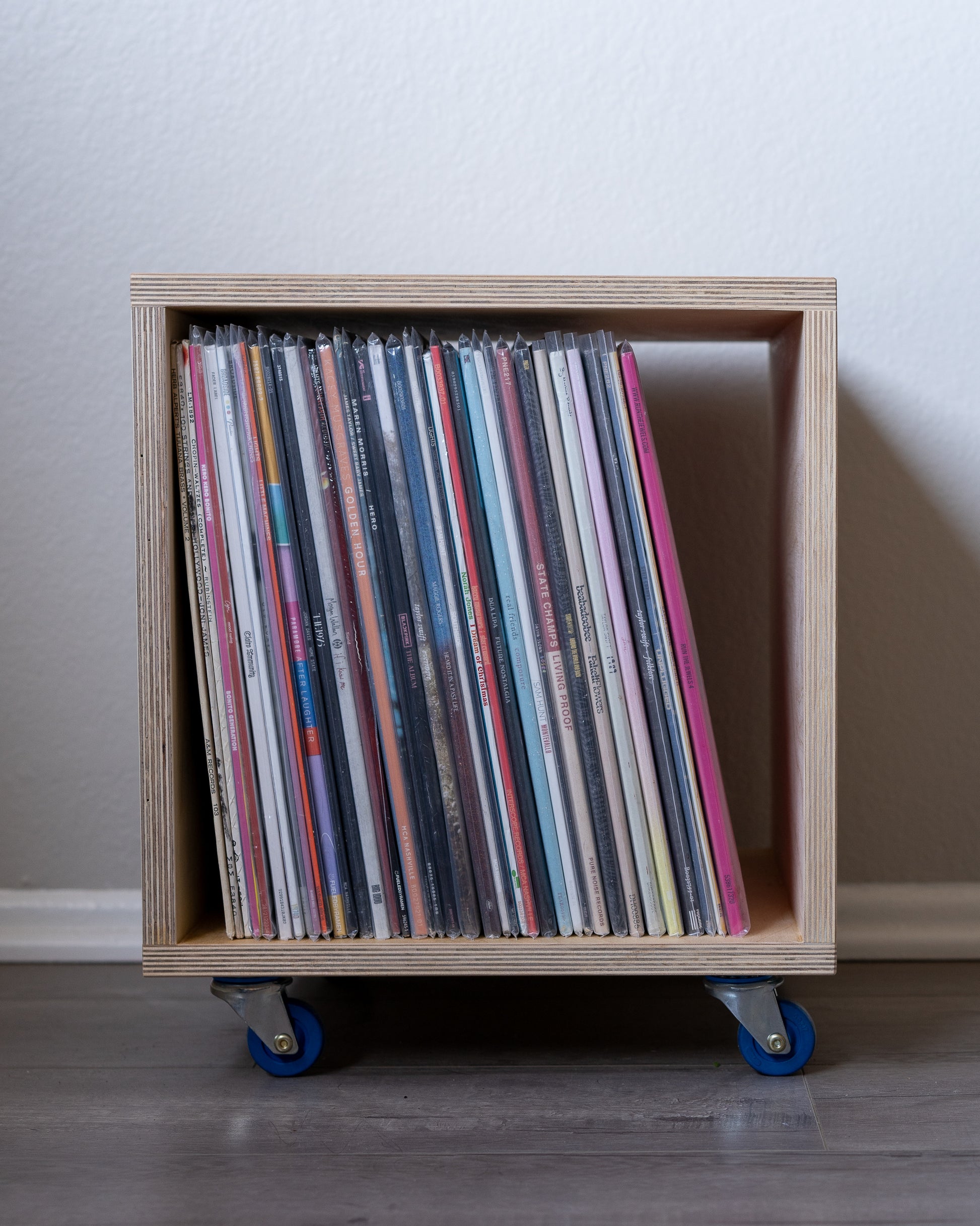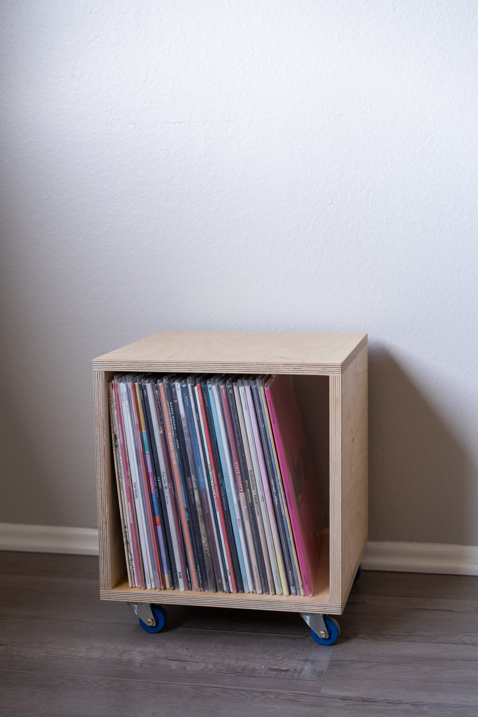 This is my absolute favorite way to store my vinyl. Small but mighty, the Record Cube holds about 50 records and is stout enough to put a turntable on or use as extra seating when company is over and the music is spinning.